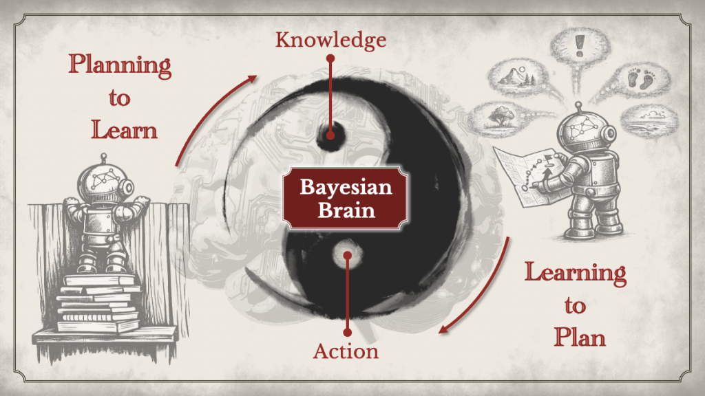 I believe the answer lies in reverse-engineering the same principles behind human reasoning—Bayesian principles. We are natural Bayesians: we integrate new evidence with prior knowledge and choose actions that serve our goals in the face of uncertainty. Unlike traditional methods that separate learning and planning as disconnected modules, my work unifies them into a continual, four-step process under a universal energy constraint: 1) Inference; 2) Inference for Decision; 3) Decision; and 4) Decision for Inference. My research can thus be summarized as “4R for 4R”:
